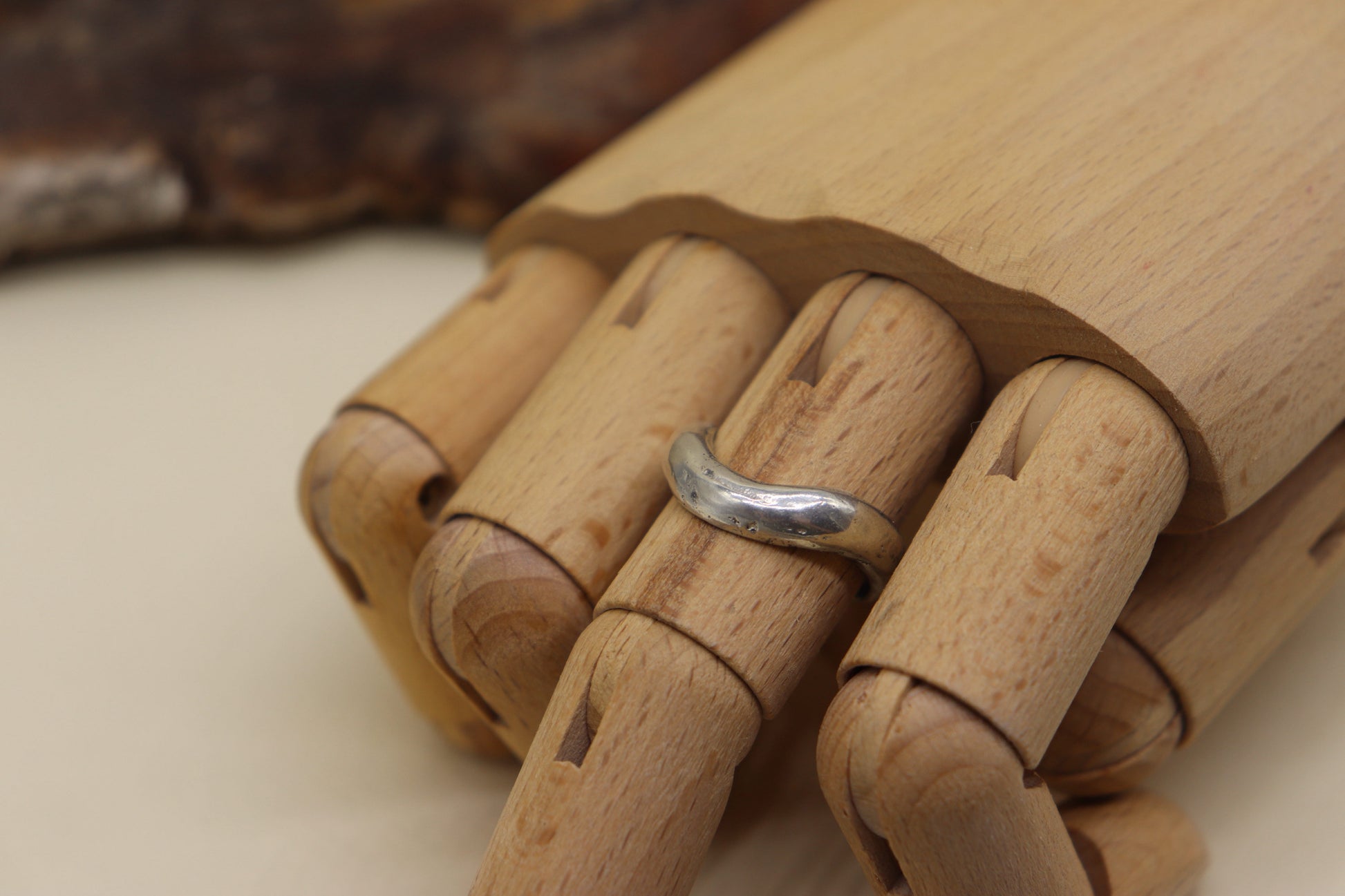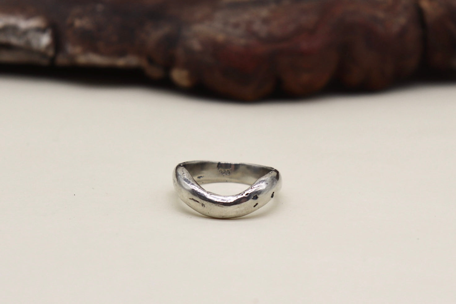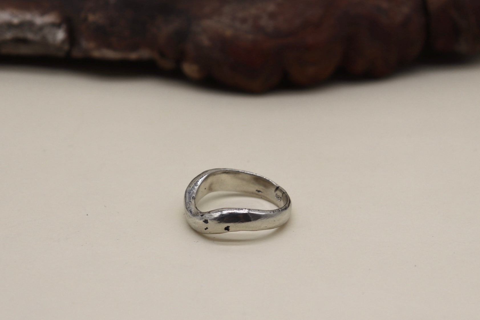 This solid sterling silver band was created using the traditional sand-casting technique, giving it a raw, organic texture unique to each piece. Cast in 925 silver and hand-finished for a natural, earthy look.